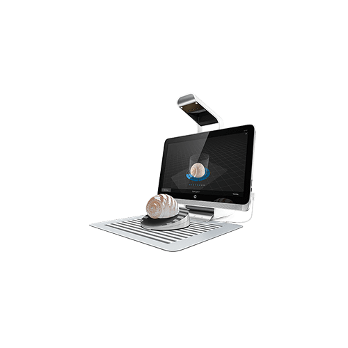Ce scanner est équipé d’un plateau rotatif à inclinaisons variables sur lequel l’objet est posé, le logiciel s’occupe de piloter le scanner 3D et son plateau afin de présenter l’objet sous plusieurs angles. Si besoin de scanner l’objet en deux fois (dessus et dessous par exemple), le logiciel possède des fonctions avancées permettant de réunir plusieurs prises de vues et de les aligner entre elles pour obtenir un modèle global.