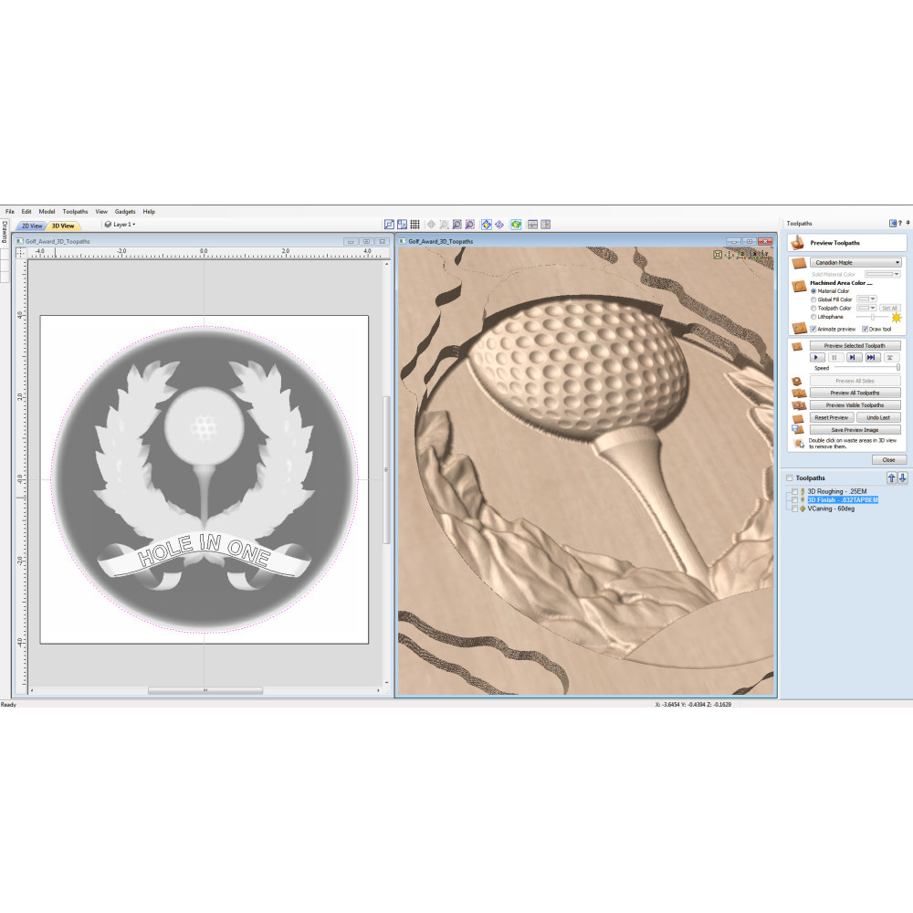Des assemblages précis peuvent être conçu avec des conceptions de profils 2D ou de modèles 3D. Le logiciel peut slicer les modèles 3D en plusieurs tranche pour correspondre à la course en Z de votre machine si celle-ci est plus faible que la hauteur de la pièce.